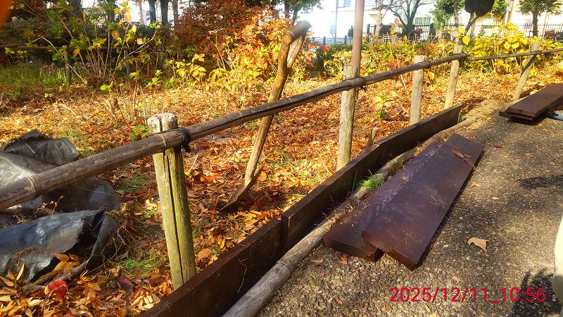 1月は定例活動はお休みですが、土留め板の設置と土入れだけ行いました。土入れはまだまだたくさんあります。