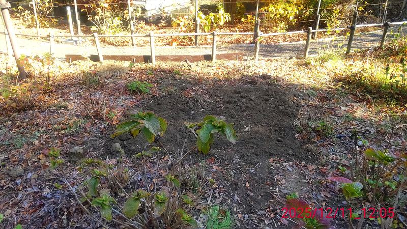 今日はアジサイ6株の植付けと落葉清掃を行いました。