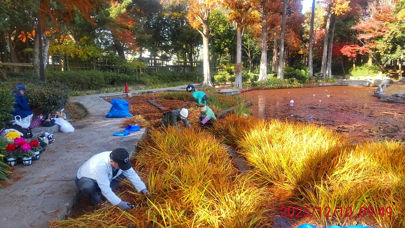 午前9時にあやめ園(池の南側)に作業のできる服装でお越しください。